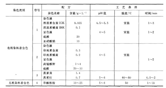 鈍化(三酸鈍化)→水洗→熱水洗→浸水溶性清漆[1:(5~20)]→水洗→晾干或烘干。 (3)仿金涂料工藝 仿金涂料工藝是在光亮白色鍍層上(鎳、銀)噴一層金黃色的透明漆,或在金色電泳涂料中進(jìn)行陰極電泳,從而獲得美觀的金色涂層。 仿金涂料,可采用水性氨基仿金烘漆或聚氨酯仿金漆,也可在氨基清漆、聚氨酯清漆、硝基清漆、醇酸清漆等清漆中加入少量黃色與紅色染料自行配制(用醇溶染料)。不同品種的漆料有不同加工工藝,成本與質(zhì)量也不同,依據(jù)產(chǎn)品要求選用。 對(duì)于非導(dǎo)體,如塑料、玻璃、陶瓷制品,可先進(jìn)行真空蒸鍍鋁或化學(xué)鍍等方式獲得金屬層,再涂裝處理。 (4)鋁合金氧化著色 鋁一般采用硫酸陽極氧化后著金色(具體工藝見第7章),金色的染色液常用紅色與黃色調(diào)配,黃色多,紅色少, 鋁氧化著仿金色工藝規(guī)范