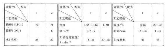 銅及其合金的電解拋光,廣泛采用磷酸電解液。其工藝規(guī)范列于表2—4—4。